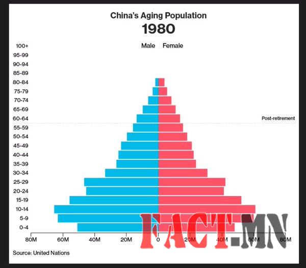 Хятадын “1 хүүхэд” бодлогын үзүүлсэн хүн амын нас, хүйсийн харьцааны өөрчлөлт 1980, 1990, 2015
