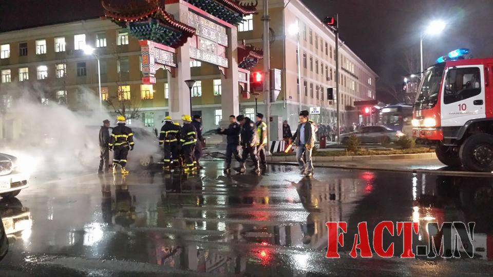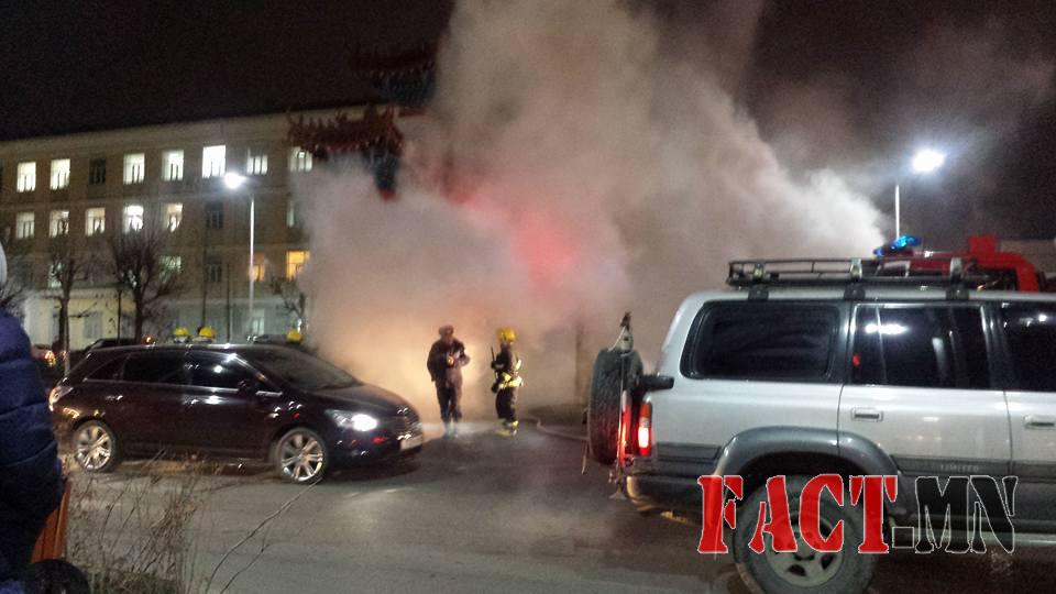 Хотын төвд машин шатаж, бага хэмжээний дэлбэрэлт болов