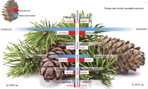 Монгол орны хушин ойн эзлэх талбай, нөөц нь сүүлийн жилүүдэд ихээхэн багассан нь судалгаагаар тогтоогдоод байна. Тодорхой хэлбэл, 2000 онтой харьцуулахад хуш модоор бүрхэгдсэн талбай өнөөдөр 184.7 мянган га-гаар, нөөц нь 23.7 сая шоометрээр багасчихаж. Шалтгаан нь ойн түймэр, хөнөөлт шавьж, өвчин, хүний зүй бус үйл ажиллагаатай холбоотой хэмээн мэргэжилтнүүд тайлбарлаж байна. Түүнчлэн дэлхийн уур амьсгалын дулааралтай холбоотойгоор хуш модны үр самрын гарц багасах, их ургацын жилийн давтагдах хугацаа удаашрах хандлагатай болжээ.