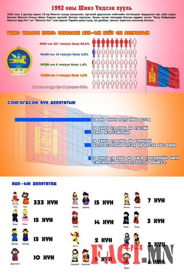 Монгол улсын 4 дэх үндсэн хууль буюу 1992 оны шинэ үндсэн хуулийн талаархи инфографик