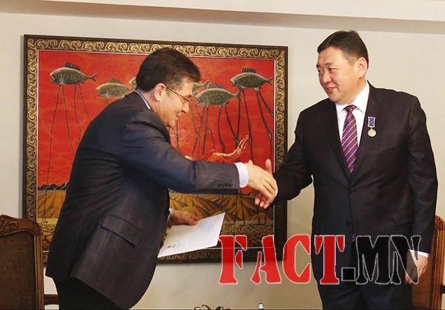Мөн Элчин сайд И.К. Азизов М. Энхболд даргын Монгол, Оросын хоёр орны харилцаа, хамтын ажиллагааг хөгжүүлэхэд үнэтэй хувь нэмэр оруулсныг тэмдэглэж, ОХУ-ын Холбооны зөвлөлийн хүндэт медалиар шагнагдсан явдалд баяр хүргэв.
