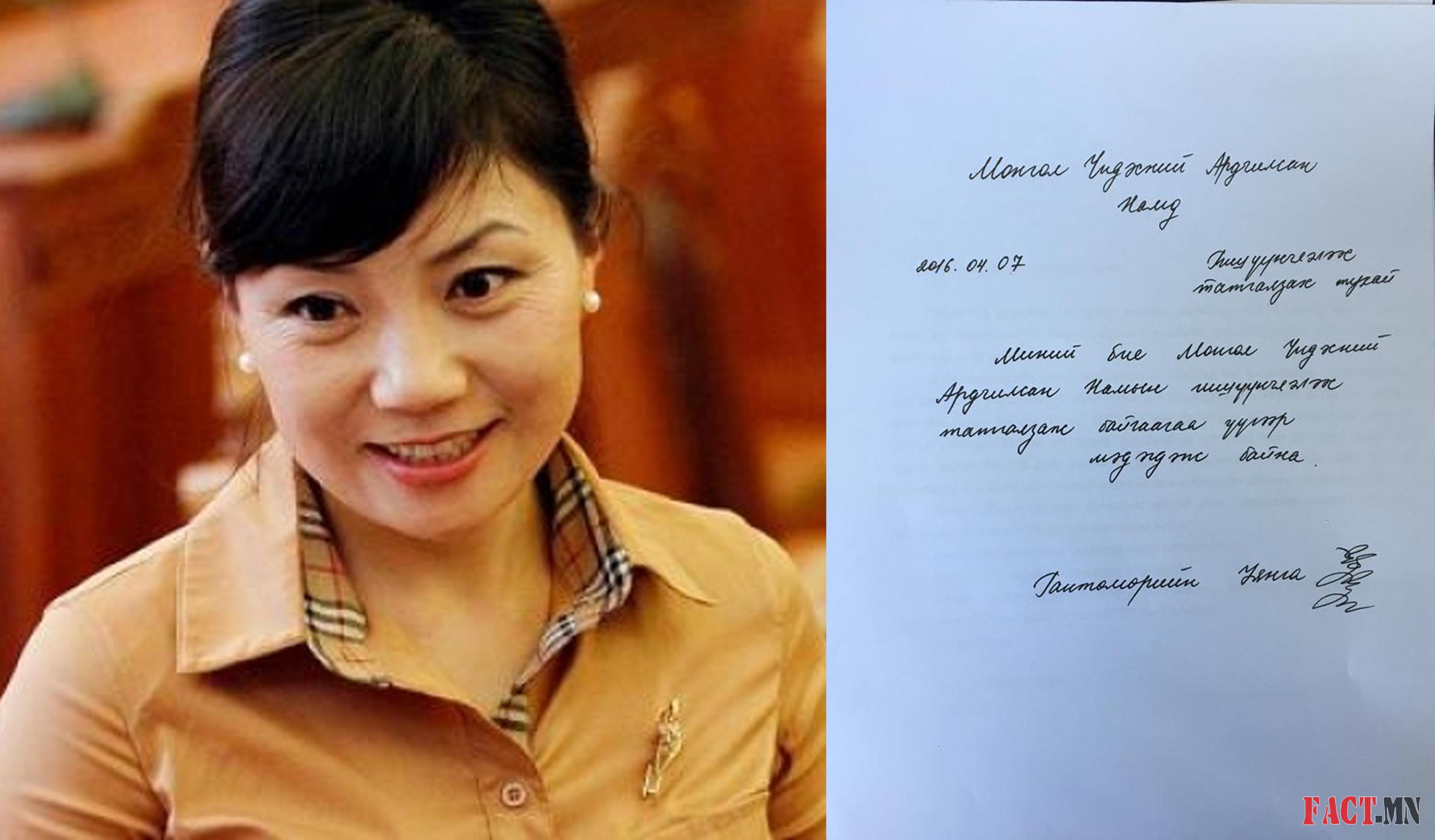 Учир нь “Шударга Ёс Эвсэл”-ээс УИХ-ын гишүүн Г.Уянга, Л.Цог нар гарахаа мэдэгдсэн цагаас л түүний үнэ хүнд өсөж байгаа гэх шуум дэгдсэн нь өнөөдөр биелэлээ олоод эхэллээ. Өнөөдөр УИХ-ын гишүүн Г.Уянга өөрийн цахим хуудсандаа “Монгол Үндэсний Ардчилсан Намын гишүүнчлэлээс татгалзаж байгаа, түүнчлэн гишүүнчлэлээс хасаж өгөхийг хүссэн өргөдөл”-өө өгч байгаагаа зарласан юм.