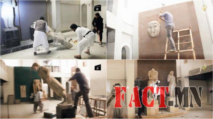 Ингээд ч зогсохгүй үүнийгээ дүрс бичлэгт буулган интернетээр тарааж байгаа юм. Мосул хотын музейн исламын соёлын дурсгалт зүйл, хөшөөг нурааж байгаагаа бичиж интернэтээр түгээсэн нь соёлт хүн төрөлхтний дургуйцлийг төрүүллээ.
