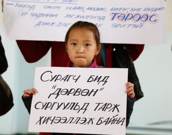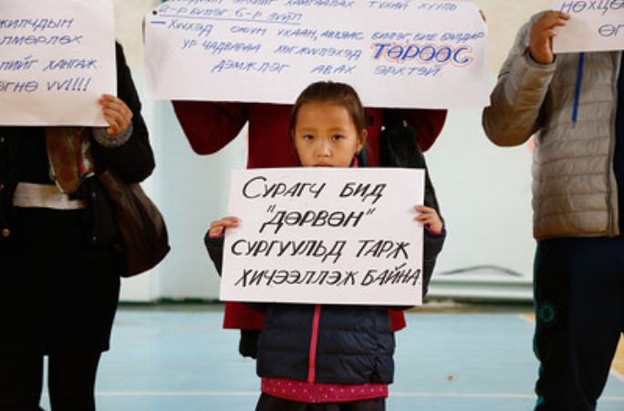 Тухайн үед сургуулийн барилгыг концессийн гэрээгээр барих Засгийн газрын тогтоол гарсан ч өнөөдрийг хүртэл барилгын ажлыг эхлүүлээгүй. Үүний улмаас багш, сурагч зутарч явна. Тэд дөрвөн сургуульд хуваагдаж гурван ээлжээр хичээллэж байгаа. Тэд өөрсдийнх нь сурах боловсрох эрхийг нь зөрчиж байгааг ийнхүү эсэргүүцэн жагсаал хийж, сургуулийн байрыг хурдан барьж өгөхийг шаардлаа.