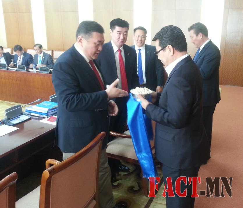 Эргэн санааулбал 2012 онд тэд МАХН-д элсэхэд мөн л тус намынхан тэднийг хадаг сүү барин угтаж байсан билээ. Тэгвэл тэрхүү өдрийн үйл явц өнөөдөр дахин давтагдлаа. Ч.Улаан, Д.Тэрбишдагва өнөөдрөөс эхлэн намын бүлгийн хуралдаа сууж байгаа юм.