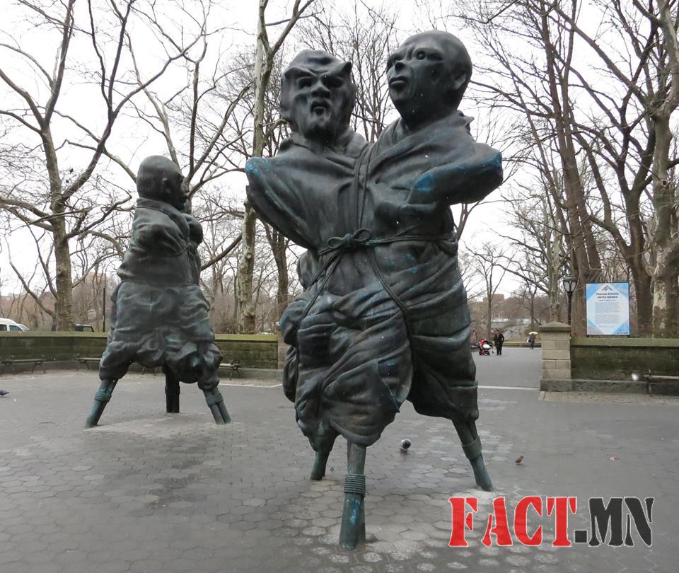 Харин би энэ зурагт “FACEBOOK friends” гэдэг нэр өглөө. Зарим нэг маань, нүүрномын 9999 “найз”-тай байдаг. Хэнтэй ч хамаагүй гэнэт найз болчихдог, хэн хэнээ мэдэхгүй хүмүүс хэн хэнээсээ яг өөр шиг нь байхыг шаардаад эхэлдэг. Өөр шиг нь биш байвал уурлаад, загнаад, үглээд, шүүмжлээд, зодох гээд байдаг. Өөрийн үзэл бодлоо илэрхийлж, өөрийнхөөрөө л амьдарч яваа хүнийг өөнтөглөж, гоочилж, үгээр зодож, өвтгөж хэмлэчихээд найз хэвээрээ байх гээд зүтгээд байдаг. Хэлхэлдсэн нөхөд буюу хэлхэлдсэн дайснууд! Бид яг ийм, тогтворгүй, хэзээ л бол хэзээ хугарч мэдэх саваа модон дээр дэнжигнэн дэнжигнэн, өдөр шөнөгүй фэйсбүүкдмой.