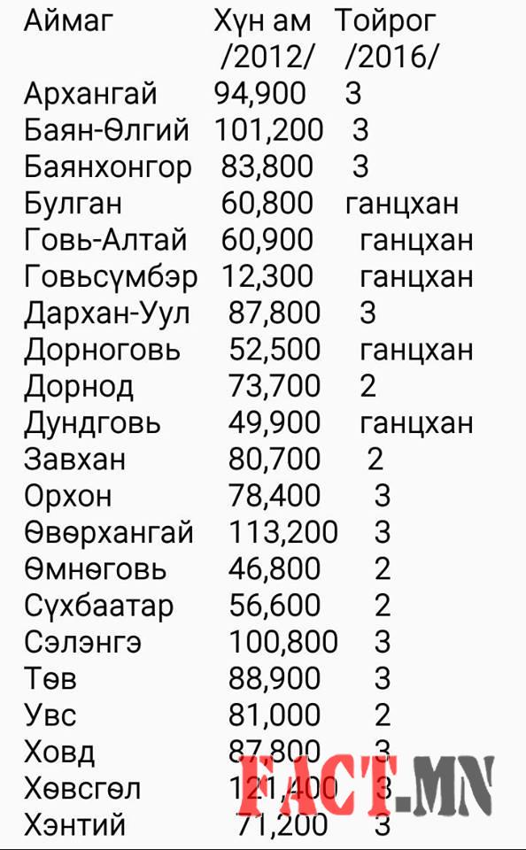 Огноо: 2016/5/12 16:02:19 Аймаг, тойрог, хүн ам, мандат Зарим нэг аймгийн хүн ам нь 2016 онд огцом өссөн байх.Гэхдээ л Баян-Өлгий,Баянхонгор, Хэнтий арай арай URL: Tags: аймаг, мандат, тойрог, Хүн ам Холбоотой мэдээАймаг “Нураасан” хүн ахиад аймаг засаглах нь АЮУЛХүн амаа хэтэрхий удаан вакцинжуулж байна гэж Европыг шүүмжилжээХүн ам, орон сууцны 2020 оны ээлжит тооллогын дүнгээс – 6Хүн ам, орон сууцны 2020 оны ээлжит тооллогын дүнгээс – 5Хүн ам, орон сууцны 2020 оны ээлжит тооллогын дүнгээс – 4Хүн ам, орон сууцны 2020 оны ээлжит тооллогын дүнгээс – 3Хүн ам, орон сууцны 2020 оны ээлжит тооллогын дүнгээсТойрог зарах тийз буюу 100 саяын наймаа эхлэв үүХотын гишүүд орон нутагт мандатаа “булаалгах”-ыг хүсэхгүй байна ← → Сэтгэгдэл бичих Cancel Reply You must be logged in to post a comment.
