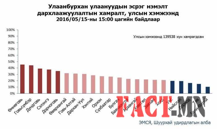 Орон даяар улаанбурхан өвчний нэмэлт дархлаажуулалт энэ сарын 12-ноос /2016.02.12/ эхэлсэн. Дархлаажуулалтад 18-30 насныхан харъяалал харгалзахгүйгээр төлбөргүй хамрагдах юм. Тэгвэл ЭМСЯ-ны Шуурхай удирдлагын төвөөс мэдээлснээр Улаанбурхан-улаанууд өвчний эсрэг нэмэлт дархлаажуулалтад өчигдрийн байдлаар 136741 хүн хамрагджээ. Энэ сарын 25 хүртэл нийт 600 000 залуучууд хамрагдах ёстой юм. 18-30 насныханд вакциныг амралтын өдөр харгалзахгүйгээр хийж байгаа бөгөөд улсын хэмжээнд 1600 гаруй эмч, эмнэлгийн ажилтан, 900 гаруй түр цэгүүд, өрх сум, дүүрэг, аймгийн эмнэлгүүд бүрэн хүчин чадлаараа ажиллаж байгаа аж.
