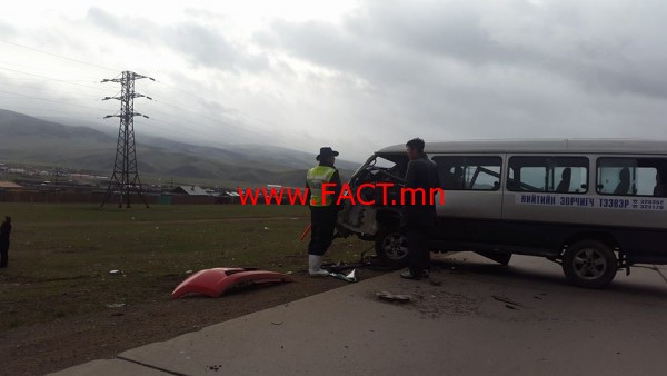 Төв аймгийн Баянхангай сумын Сэвт худаг гэх газар асфальтан замд T.Prius маркийн авто машины жолооч М нь Мустанг маркийн улсын дугааргүй мотоцикльтой мөргөлдөж зорчигч 28 настай эрэгтэй Б нарын 2 хүний амь нас нь хохирчээ.