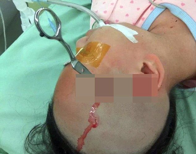 Хятадад нэгэн ууртай эцэг охиныхоо аминд хүрэх шахсан хэрэг гарчээ. 10 настай охин нь хичээлээ хийхийн оронд гадаа тоглож байжээ. Үүнд уурссан эцэг гарт барьсан зүйлээрээ охины толгойг цохьтол тэр нь хайч байж таарчээ. Харин хайч нь охины толгойн чамархай хэсэгт зоогджээ.