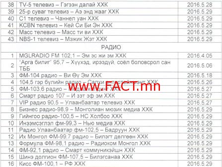 УИХ болон НИТХ-ын 2016 оны сонгуулийн сурталчилгааг нэвтрүүлэх эрхийг 43 телевиз, 16 радиод өгчээ. Эдгээр радио, телевизүүд өдөрт нэг цаг сонгуулийн сурталчилгаа цацах эрхтэй аж.