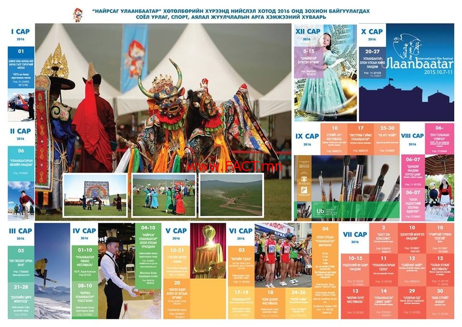 | 14 | “Улаанбаатар” олон улсын кино наадам | НСУГ | Монголын урлагийн зөвлөл | 10-р сарын 11-15 |