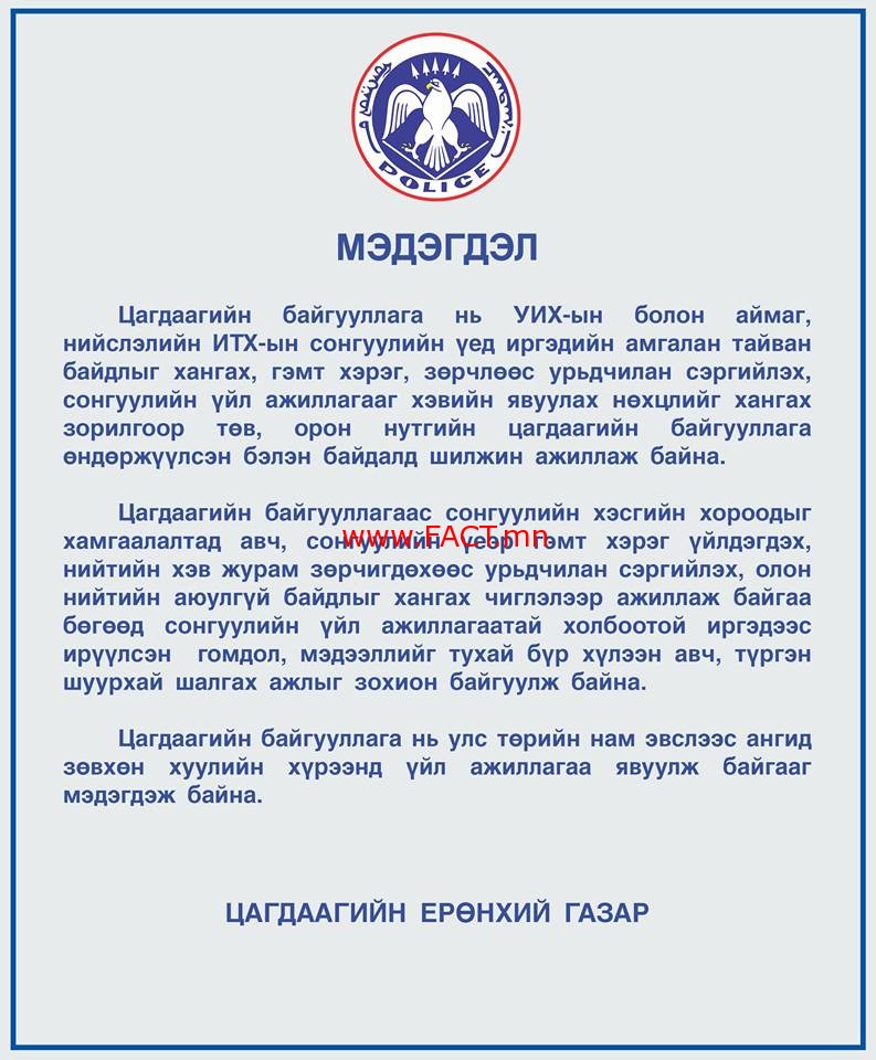 ЦЕГ-аас мэдэгдэл гаргалаа