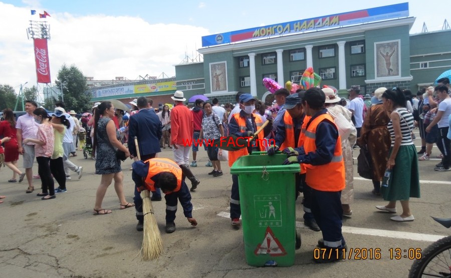 Улаанбаатар хотын Захирагчийн ажлын алба, Нийтийн үйлчилгээний Улаанбаатар нэгтгэл ОНӨААТҮГ, Баянзүрх, Баянгол, Чингэлтэй, Хан-Уул, Сүхбаатар дүүргийн Засаг даргын Тамгын газар хамтран Төв цэнгэлдэх хүрээлэнгийн тохижилт, талбайн цэвэрлэгээний ажлыг баяр наадмын өмнөх болон тэмдэглэн өнгөрүүлэх өдрүүдийн хугацаанд амжилттай сайн зохион байгууллаа.