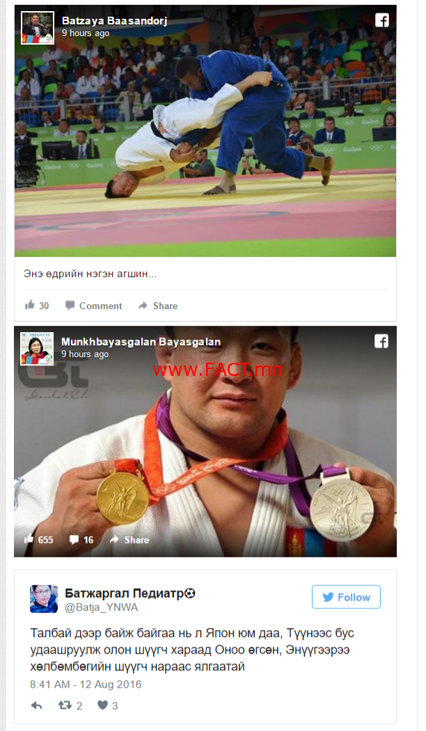 Олимпийн алт, мөнгөн медальт, хөдөлмөрийн баатар Н.Түвшинбаяр өчигдөр “РИО-2016″-гийн олимпийн наадмын дэвжээн дээр гарч, барилдан, эхний учраадаа өвдөг шороодлоо. Энэ нь түүнийг улс төрд оруулж, УИХ-ын сонгуульд өрсөлдүүлсэн Х.Баттулга, АН-тай холбоотой эсэх талаарх сошиал медиад өрнөсөн санаа бодлыг багцлан хүргэж байна.
