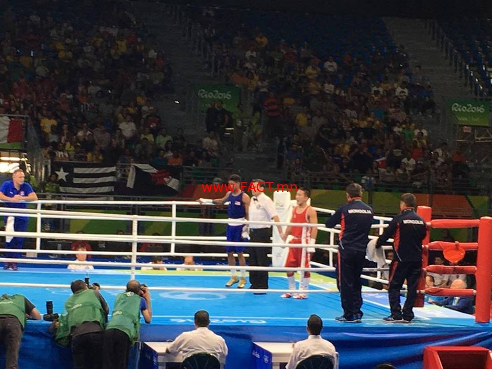 “Рио-2016″ олимпийн боксын эрэгтэйчүүдийн 56 кг-д хүч үзсэн манай шилдэг ширэн бээлийтэн Эрдэнэбатын Цэндбаатар олимпийн наадмын хүрэл медалийн төлөө АНУ-ын шилдэг боксчинтой тулалдлаа. Гурван үеийн турш тун сонирхолтой тулаан хийсний эцэст манай тамирчин 3:0 харьцаатай ялагдал хүлээлээ.