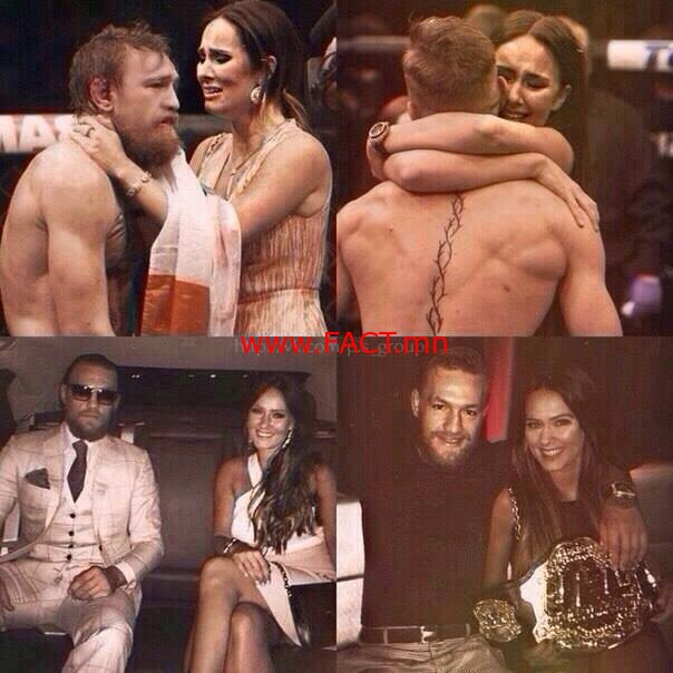 “Бид хоёр хамтдаа найман жил амьдарч байна. Дублин хотоос 30 километрийн зайд орших ажилгүйчүүдэд хямдхан түрээслэдэг байранд амьдардаг байлаа. Би ажилгүй байсан болохоор бүх цагаа зааланд өнгөрүүлнэ. Дэлхийн аварга болно гэж өөртөө итгэдэг байлаа. Эхнэр минь ч гэсэн надад итгэнэ. Хэдийгээр мөнгө муутай, орчин тааруу ч гэсэн тэр маань намайг зөв хооллож, дэглэм сайн бариулахын тулд өөрийгөө миний төлөө зориулсан юм. Өндөр ачаалалтай бэлтгэлээс их ядраад ирэхэд “Конор, би мэдэж байна аа. Чи минь чадна аа” гэж урам өгдөг байлаа. Одоо би сая саяар нь мөнгө олж байгаа. Миний тулааныг үзэхээр 50-70 мянган хүн ирж байна. Одоо би үнэтэй машин, хүссэн хувцас, хүссэн байраа авч чадна. Эхнэр минь ч гэсэн. Тэр маань бүр надаас илүүг хүртэх эрхтэй. Тэр минь одоо ч гэсэн миний дэргэд хэвээрээ…”Чи чадна аа” гэж хэлсэн хэвээрээ л байгаа” гэж Конор Макгрегор өгүүлжээ.