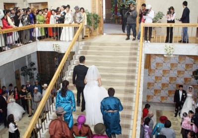 Энэ өдөр гал голомтоо бадраасан хосуудын долоо нь Гэрлэх ёслолын ордны хашаан дотор байрлах “Их өргөө гэр”-т хуримлав. Хосууд сарын өмнө захиалга өгсөн ч багтаагүй тул “Их өргөө гэр”-т хуримаа хийж буйгаа хэлэв. Гэхдээ Гэрлэх ёслолын ордноос үзүүлж буй үйлчилгээ нь бараг ялгаагүй. Тэдний нэг Б.Сэнгэрагчаа, Б.Оюунжаргал нартай уулзлаа. Залуу хосууд Завхан нутгийнх юм байна. Тэд цайвар өнгийн хос дээлээр гоёжээ. Залуус Улаанбаатарт аж төрөхөөр шийдсэн гэнэ. Учир нь тэд энд ажилд оржээ. Тэгээд ч хотын амьдрал хосуудад таалагдсан гэнэ.