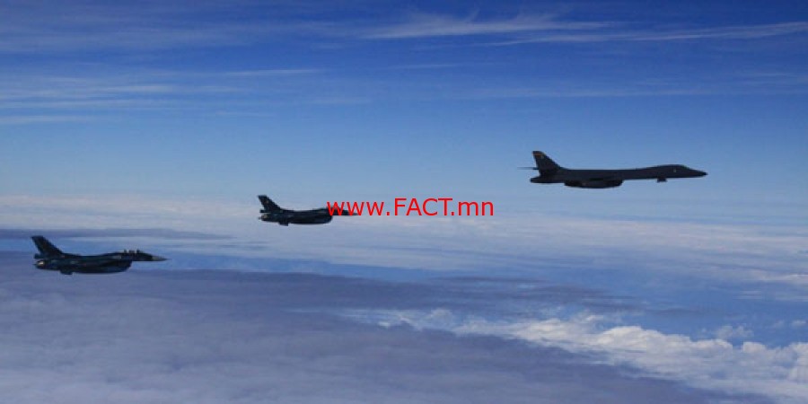 Сөүлд газардсан B-1B нь цөмийн зэвсгээр тоноглох боломжтой стратегийн бөмбөгдөгч онгоц бөгөөд БНАСАУ тав дахь удаагийн цөмийн туршилт хийсэнтэй холбогдуулан Гуам дахь цэргийн баазаас тус улсад иржээ. Үүнээс гадна Японд цэргийн сургуулилтад хэрэглэгдэж буй F2 байлдааны хоёр хөлөг тун удахгүй Солонгосынхойгруу нисэх юм байна. Мөн БНСУ F15 сөнөөгч онгоцоо ч бэлэн байдалд шилжүүлж, БНСУ, Япон, АНУ гэсэн гурван улс батлан хамгаалахын салбарт хамтарч буй ажээ.