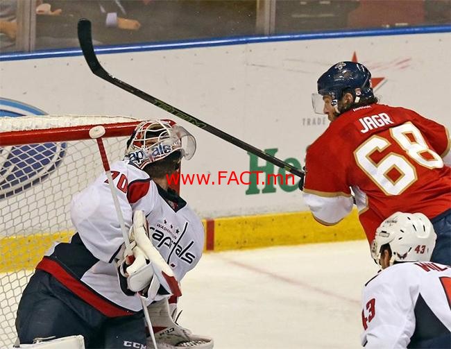 “Флорида Пантерс” багийн довтлогч Яромир Ягр “Вашингтон Кэпиталс”-тай (2:4) хийсэн тоглолтод айлын хаалгыг нэг шайбаар мялаажээ.
