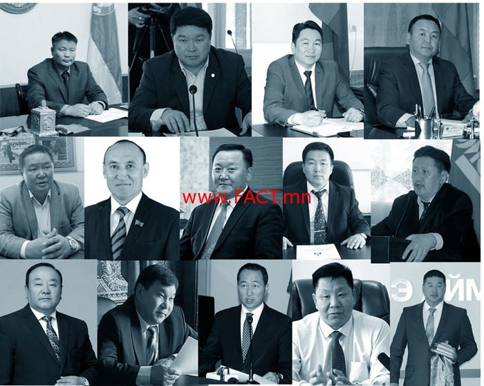 Дорноговь аймгийн Засаг дарга Т.Энхтүвшин “Бэл капитал” ХХК-ийн 50, “Сайхан улаан оргил” ХХК-ийн 49, “Бурхант тал” ХХК-ийн 50 хувийг, Сүхбаатар аймгийн Засаг дарга З.Энхтөр “Амэ трэйд” ХХК-ийн 16.67, “Аргил сувд” ХХК-ийн 33.3, “Аядекс” ХХК-ийн 25 хувийг, Хэнтий аймгийн Засаг дарга Н.Ганбямба “Жонон даатгал” хоршооны 51, “Жонон холдинг” ХХК-ийн 100 , Санхүү бизнесийн “Жонон” дээд сургуулийн 100 хувийг, Баян-Өлгий аймгийн Засаг дарга А.Гылымхан “Тулпар” ХК-ийн 75, “Жарменке” ХХК-ийн 100, “Нур” ХХК 100 хувийг эзэмшдэг ажээ.