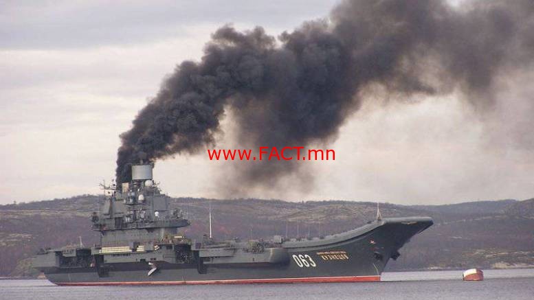 603c5ce0bf33bd8b13e1632b4fbe74eaӨдгөө Сирийг зорин Ла-Маншийн хоолойг гаталж байгаа Оросын “Адмирал Куцнецов” гэдэг нисэх онгоц тээгч хөлөг оноцны яндангаараа бөөн хар утаа баагиулан хөвж байгаа зургийг Британы HMS Duncan гэдэг эсминецээс  авч дэлхийгээр нэг цацжээ.Уг эсминец нь “Адмирал Куцнецов”-ыг даган хянаж яваа аж. Дэлхийн хүчирхэг гүрний усан цэргийн хүчинд алдарт “Титаник” шиг уурын хөдөлгүүрээр ажиллан утаа хаядаг бүр нисэх онгоц тээгч хөлөг байгаа нь бөөн шуугиан тариад байна.