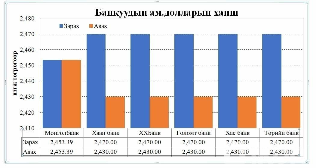 Арилжааны банкууд ам.долларыг 2,470 төгрөгөөр зарж эхэллээ