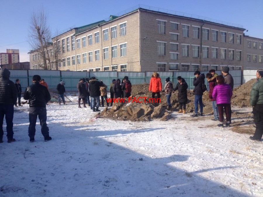 Тус сургуулийнхны хэлж буйгаар сургуулийн газарт Сүхбаатар дүүргийн нийгмийн даатгалын байрны барилга бариулахаар 2015 онд газар олгосон аж. Улмаар асуудал гарч эхлэхэд сургуулийнхан хандаж болох бүх холбогдох байгууллагуудад хандсан ч нэгээс нь ч хариу ирээгүй байна. Тэр ч бүү хэл салбар яамныхан нь ч тэдний асуудлыг авч хэлэлцээгүй аж. Иймээс л барилгын компанитай багш ажилчид, эцэг эхчүүд, сурагчдын төлөөлөл улаан нүүрээрээ тулж, барилгын ажлыг түр хугацаанд зогсоож чаджээ. Ингээд ухсан нүхийг нь хүүхдүүдийнхээ тусламжтайгаар бөглөсөн байна.