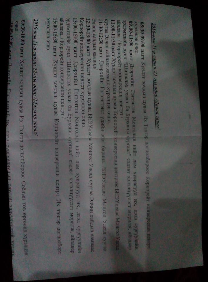 Далай лам өнгөрсөн тав дахь өдөр Монголд айлчилж ирсэнтэй холбогдуулан хурал чуулган үргэлжилсээр байна. Тэрээр зөвхөн шашин соёлын арга хэмжээнд оролцож сүсэгтэн олонтойгоо уулзах юм гэнэ.