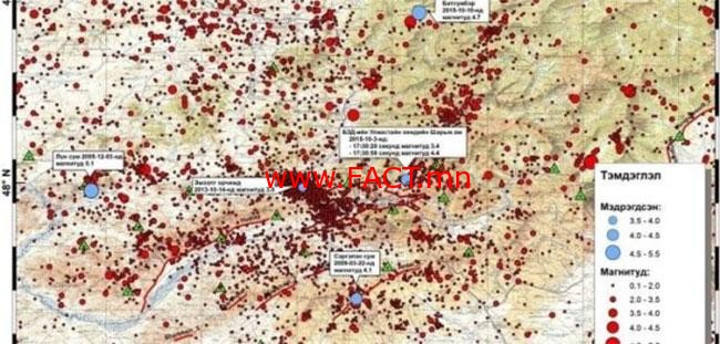 Монгол орны нийт нутаг дэвсгэрийн 75 хувь нь VII-VIII ба түүнээс дээш баллын чичирхийлэл үүсэх магадлалтай бүсэд багтдаг ажээ.