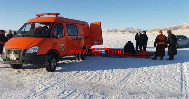 Архангай аймгийн Тариат сумын Тэрхийн цагаан нуурын мөсөн дээгүүр Марк 2 автомашинтай гурван иргэн зорчиж яваад нуурын мөс цөмөрсөний улмаас усанд осолдсон дуудлагаар /(2016.12.17-ны өдрийн 10:35 цагт) аймгийн Онцгой байдлын газрын албан хаагчид ажиллалаа.