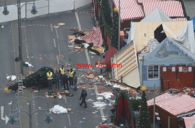 Ачааны машинтай зул сарын баярын захыг дайрсан, үүний улмаас 12 хүн амь үрэгдэж, 50-иад хүн хүнд, хөнгөн шархадсан. Хожим “Исламын улс” террорист бүлэг энэ халдлагын хариуцлагыг өөртөө хүлээсэн. 3-4 хоног Герман орон даяар эрэн сурвалжилж байсан Анис Амрийг Италийн Милан хотод цагдаагийн эргүүл устгасан юм.