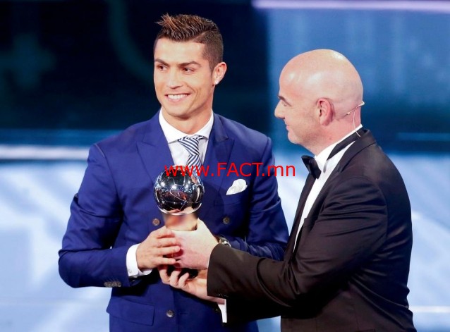Швейцарийн Цюрих хотноо Олон улсын хөлбөмбөгийн холбоо буюу ФИФА-гаас анх удаагаа зохион байгуулсан Оны шилдгүүдэд шагнал гардуулах ёслолын /Best Fifa Football Awards/ үеэр Португалын довтлогч Криштиану Роналду-г “ФИФА-гийн шилдэг эрэгтэй хөлбөмбөгчин”-өөр шалгарууллаа.