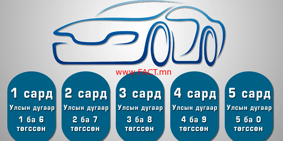 Энэ сард 2 болон 7-оор төгссөн улсын дугаартай тээврийн хэрэгсэл эзэмшигч татвар төлбөрөө төлөх хуваарьтай байгаа. Нийт 86744 авто тээврийн болон өөрөө явагч хэрэгсэл 2 болон 7-оор төгссөн улсын дугаартай байдаг аж.