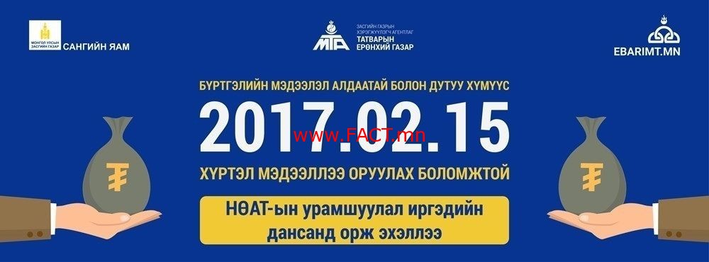 2017 оны 1 дүгээр сарын 25-ны байдлаар нэгдсэн системд хэрэглэгчийн мэдээллээ дутуу бүртгүүлсэн 137,822 татвар төлөгч иргэн байгаа бөгөөд мэдээллээ нягтлан шалгах, засварлах сүүлийн хугацаа 2 дугаар сарын 15-ны өдөр хүртэл үргэлжилнэ.