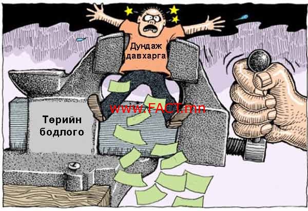 Гэтэл манайд хувийн хэвшлээ татвараар дарамталж, валютын ханшийн шуурганд хаалгаа барихаас өөр сонголт үлдээсэнгүй. Муу дээрээ муухай, муухай дээрээ улцан гэгчээр хувийн өмчийн баталгаа алдагдаж байгаа энэ цагт алгуур боловч тэлж буй дундаж давхарга ахин хумигдаж болзошгүй нь.