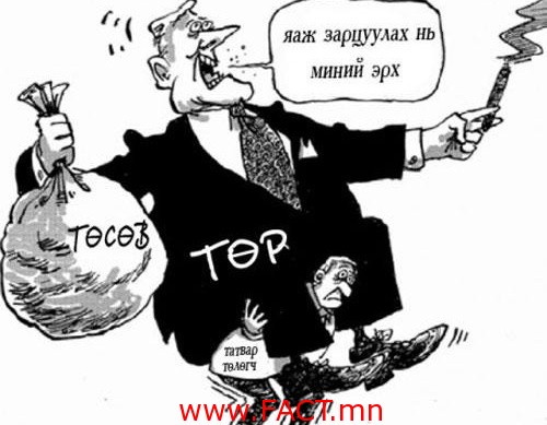 МАН сонгуулийн өмнө олон сайхан зүйл амлаж байлаа. Эдийн засгийг сайжруулж, ард түмний нуруун дээр үүрүүлсэн хүнд ачааг авна, цалингаараа нутагтаа сайхан амьдрах боломжоор бүрдүүлнэ гээд л дээд, доодгүй л амлаж байсан. Магадгүй энэ амлалтад нь ард түмэн итгэн дийлэнх нь МАН-д сонголтоо өгсөн биз. Гэтэл өнөөдөр бодит байдал дээр тэдний хэлж ярьж байсан нь 360 градусаар эргэжээ. МАН татвар нэмэхгүй гэж байлаа. Харин өнөөдөр Олон улсын валютын сангийн даалгавраар нэлээд хэдэн татварыг нэмэгдүүлэхээр шийдчихлээ. Бас болоогүй татваруудыг нэмж татвар төлөгч жирийн иргэдийн халаас руу өнгийлөө. Биднээс л авч байвал хамаагүй гэсэн шиг төрийн данхайсан бүтэц, дарга нарын тансаглалыг танах тухай нэг ч үг өгүүлбэр орж ирсэнгүй. Үнэн хэрэгтээ бол дарга нар, эрх мэдэлтнүүдийн төсвийг танаж, төрийн албаны тоог цөөлж, зардлаа хэмнэх талаар ярих ёстой юм шүү, Ерөнхий сайд аа.