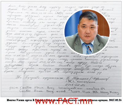 Хэрвээ болдог бол Монголын хэвлэл мэдээллийнхэн Хонконгын консулын газарт нэг өдөр өнжөөд үзээрэй. Та бүхэн өдөрт тус газраар хэчнээн монгол орж гарч тусламж хүсч байгааг нүдээрээ харж консулын газрынхны нотой үйлдэл дэлгэгдэх болно. Ямартай ч Монгол Улс иргэнээ хайхрахгүй хөсөр хаяж байхад гадны Олон улсын байгууллагын ажилтнууд нөхөрт маань анхаарлаа хандуулж хилсээр гүтгэгдээд буй энэ хэргийнх нь талаар анхнаас нь судалж үзэд дэмжлэг үзүүлэхээр болсон. Харин танай сонинд хаа холоос хандаж байгаагийн учир гэвэл Хүний эрхийн үндэсний комиссын дарга Ж.Бямбадорж, Гадаад харилцааны яамны Консулын газрын дарга Ч.Ариунболд нарт хандаж дараах зүйлсийг хэлмээр байна. “Монгол Улсын иргэн Б.Төрмөнхийн эрх нь маш ихээр зөрчигдөж байна. Монгол Улсаа харьд төлөөлөн суугаа консулын газрын ажилтнууд болон дэд дарга нар иргэдээ ийнхүү хөсөр хаяж байхад бид ямар байгууллагад хандаж тусламж авах вэ. Уг нь Гадаад дахь Монгол иргэдтэй холбоотой ямар нэг асуудал үүсэхэд Консулын газар эргэлзээгүйгээр өөрийнхөө хамгаалалтад авч, иргэн бүрээ хамгаалах бодлогыг тууштай барина гэж заасан байдаг ч энэ нь бодит амьдрал дээр хэрэгжихгүй байна. Тиймээс Гадаад харилцааны Консулын газрын дарга Ч.Ариунболд та энэ бүхнийг анхааралдаа авч Хонгконгийн консулын газрын бүхий л ажилтнуудыг Монголоо гэсэн сэтгэлтэй байлгаж өгөөч ээ. Мөн консулын газрын дэд дарга Ганбат гэдэг хүний санал болгосон орчуулагч Төрбилэг гэдэг хүн консулын газрын дэд дарга нартай ямар холбоо сүлбээтэй юм бэ гэдгийг албан ёсоор Өглөөний сонинд мэдээлэл өгнө үү. Хэрвээ Гадаад харилцааны яамны Консулын газрынхан энэ тал дээр анхаарлаа хандуулвал олон олон монголчуудынхаа эрх ашгийг хамгаалж тэдэнд амьдралын гэрэл гэгээ бэлэглэнэ байх гэж бодож байна. Угтаа бол миний нөхөр Б.Төрмөнх Хонконг дахь консулын газрын болон тэдний санал болгосон орчуулагч Төрбилэг гэдэг хүнээс болж өдгөө хилсээр ялтан болж цагаачлалын албаны шоронд хоригдож байна. Тиймээс Гадаад харицлааны яамны Консулын газрын дарга Ч.Ариунболд таныг энэ бүхнийг анхааралдаа авч асуудлыг шийдэж өгөх байх гэж найдан Үндэсний өдөр тутмын “Өглөөний сонин”-оор дамжуулан энэхүү хүсэлтийг хүргүүлж байна”” хэмээн бид хоёрын яриа тасарсан юм.