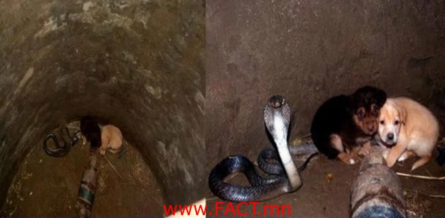 Энэтхэгийн Пунжаб тосгонд нэгэн гайхалтай үйл явдал болсон байна. Нэгэн эр усгүй болсон худгаас гаслах дуу сонссон бөгөөд очоод хартал хоёр гөлөг, кобра могой байхыг олж харжээ. Өөрсдөө гарах боломжгүй гаслаж байгаа нь энэ аж. Ингээд тэднийг эсэн мэнд гаргасан бөгөөд хачирхалтай нь хаан гэгдэх кобра могой хоёр гөлөгт ямар ч аюул, заналхийлэл учруулаагүй байна. Аврагчид тэднийг 48 цаг худганд байсан байх магадлалтай гэжээ. Ямартай ч могой ой уруугаа орж хоёр гөлөг ч эсэн мэнд үлджээ. Амьтад ч хайрлах сэтгэл бий.