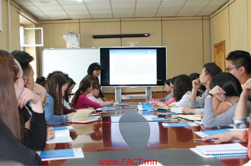 Танилцуулах хичээлийг Хорооны Захиргаа удирдлагын газрын ахлах референт Л.Долгор удирдан явуулж, банкнаас бусад санхүүгийн салбарууд, тэдгээрийн зохицуулалтын онцлог, байгууллагын хуулиар олгогдсон эрх хэмжээ болон зах зээлийн хөгжлийн чиг хандлагын талаар дэлгэрэнгүй мэдээлэл өгөв. Энэхүү арга хэмжээнд тус ангийн 28 оюутан оролцож, үнэт цаасны, даатгалын, банк бус санхүүгийн болон хадгаламж, зээлийн хоршооны зах зээлийн өнөөгийн байдал, статистик үзүүлэлтүүд болон боломж бололцоог сонирхон асууж, харилцан ярилцав гэж Санхүүгийн Зохицуулах хорооноос мэдээллээ.
