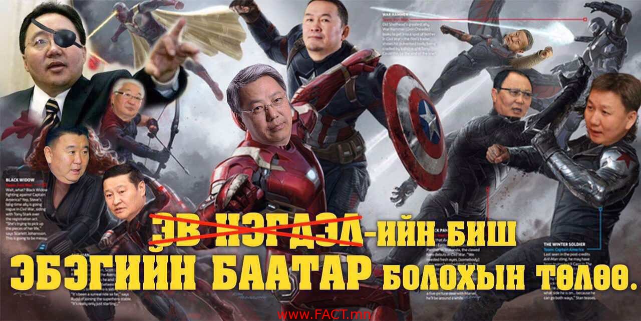 “Марвел” Монголд албан ёсоор орж ирснийг Ардчилсан нам тунхаглан зарлалаа. Үүгээр ч зогсохгүй тун удахгүй буюу ирэх зургадугаар сарын 4-нөөс “Марвел”-ийн цуврал баатруудын “амьд хүүхэлдэйг” нийтэд сурталчилан таниулах гэж байгаагаа дуулгасан юм. “Марвел” Монголд төслийг гол санаачлан хэрэгжүүлж, хөхиүлэн дэмжиж буй хүн нь Монгол Улсын Ерөнхийлөгч Ц.Элбэгдорж гэдгийг “Шийхө” сонины мэдээлснийг “Рейтус” агентлаг уламжлав. Энэ удаагийн “Марвел” цувралын гол сэдэв нь Монгол Улсын эв нэгдлийг дотроос нь хагалан бутаргах, эдийн засгийн өсөлтийг зогсоох, улстөрийн хямралыг бий болгоход оршиж байгаа гэнэ. “Марвел” Монголд төслийнхөн гол дүрийн батруудаараа нэр бүхий есөн хүнийг хүндхэн шалгаруулалтын эцэст сонгож авсан бөгөөд гол дүрийн есөн баатар таарамж муутай байгаа нь төслийн ажлыг гацааж байна хэмээн төслийн удирдагч Ц.Элбэгдорж бухимдаж байгаа сурагтай. Тиймээс баатруудын гол дүрээр тодорсон есөн эрхэм төслийн удирдагчдаа таалагдахын тулд чамгүй мэрийх болсон байна.