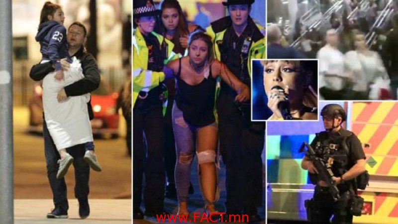 Английн Манчестер хотын “Манчестер Арена” цэнгэлдэхэд өсвөр үеийнхний шүтээн болсон дуучин Ариана Гранде тоглолтоо хийж дууссаны дараа дэлбэрэлт болж, 22 хүн амь үрэгдэн 50 гаруй хүн гэмтэж бэртсэн хэрэг өчигдөр гарлаа. Хохирогчдын тоог эхлээд 19 гэж мэдээлсэн ч дараа нь гурваар нэмэгдсэн юм. Хохирогчдын дунд бөмбөгөнд өртөөгүй, сандарсан хүмүүсийн хөлд гишгэгдсэн хүмүүс олон байжээ.