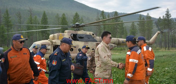 Монгол Улсын Шадар сайд У.Хүрэлсүх, ОБЕГ-ын тэргүүн дэд дарга, бригадын генерал Г.Ариунбуян нарын бүрэлдэхүүнтэй ажлын хэсэг МТ 1001 дугаарын МИ 171Е загварын нисдэг тэргээр Төв аймгийн Батсүмбэр, Мөнгөнморьт сум, Сэлэнгэ аймгийн Хүдэр, Ерөө сум, Хэнтий аймгийн Өмнөдэлгэр суманд гарч байгаа ой, хээрийн түймрийн голомт руу ниссэн.