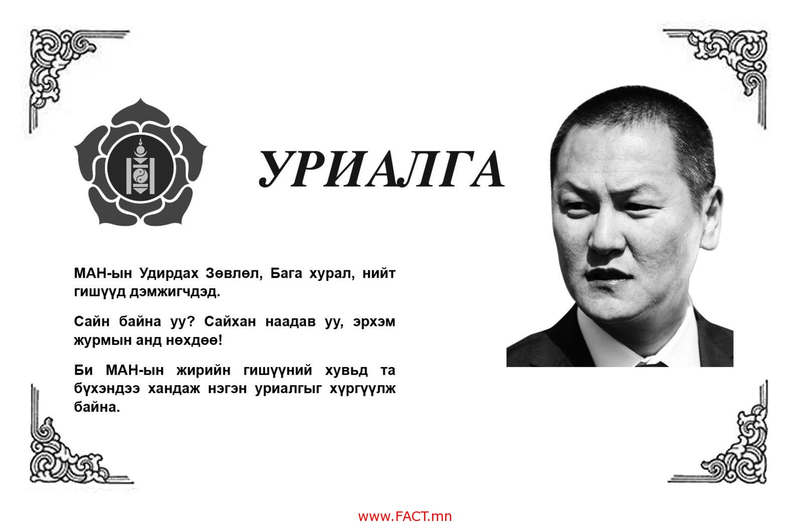 Би МАН-ын жирийн гишүүний хувьд та бүхэндээ хандаж нэгэн уриалгыг хүргүүлж байна.