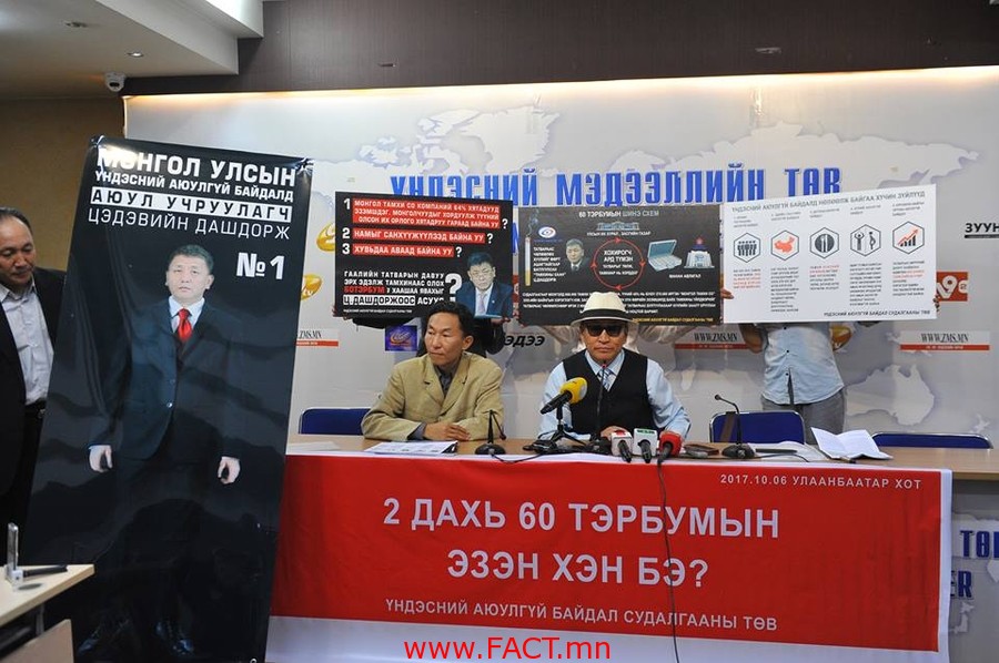 Дээрээс нь тус компанийн 70 хувийг БНХАУ-ын хоёр компани хуваан эзэмшдэг. Тиймээс энэ компани үндэсний үйлдвэрлэгч биш. энэ компани жилд 291 тэрбум төгрөгийн орлого олдог. Үүнэээс 30 хувийн татварт  авбал ойролцоогоор 60 тэрбум төгрөгийн татвар төлөх ёстой. Тиймээс манай байгууллага Ц.Дашдоржийг “Хоёр дахь 60 тэрбумын эзэн” хэмээн нэрлэж байна. Түүнчлэн Ц.Дашдорж УУХҮ-ийн сайдаар ажиллаж байхдаа өгсөн хөрөнгө орлогын мэдүүлэгтээ жилийн орлогоо 192 сая төгрөг гэж худлаа бөглөж, Монгол Улсад хүчин төгөлдөр мөрдөж буй олон хууль зөрчсөн” гэлээ.