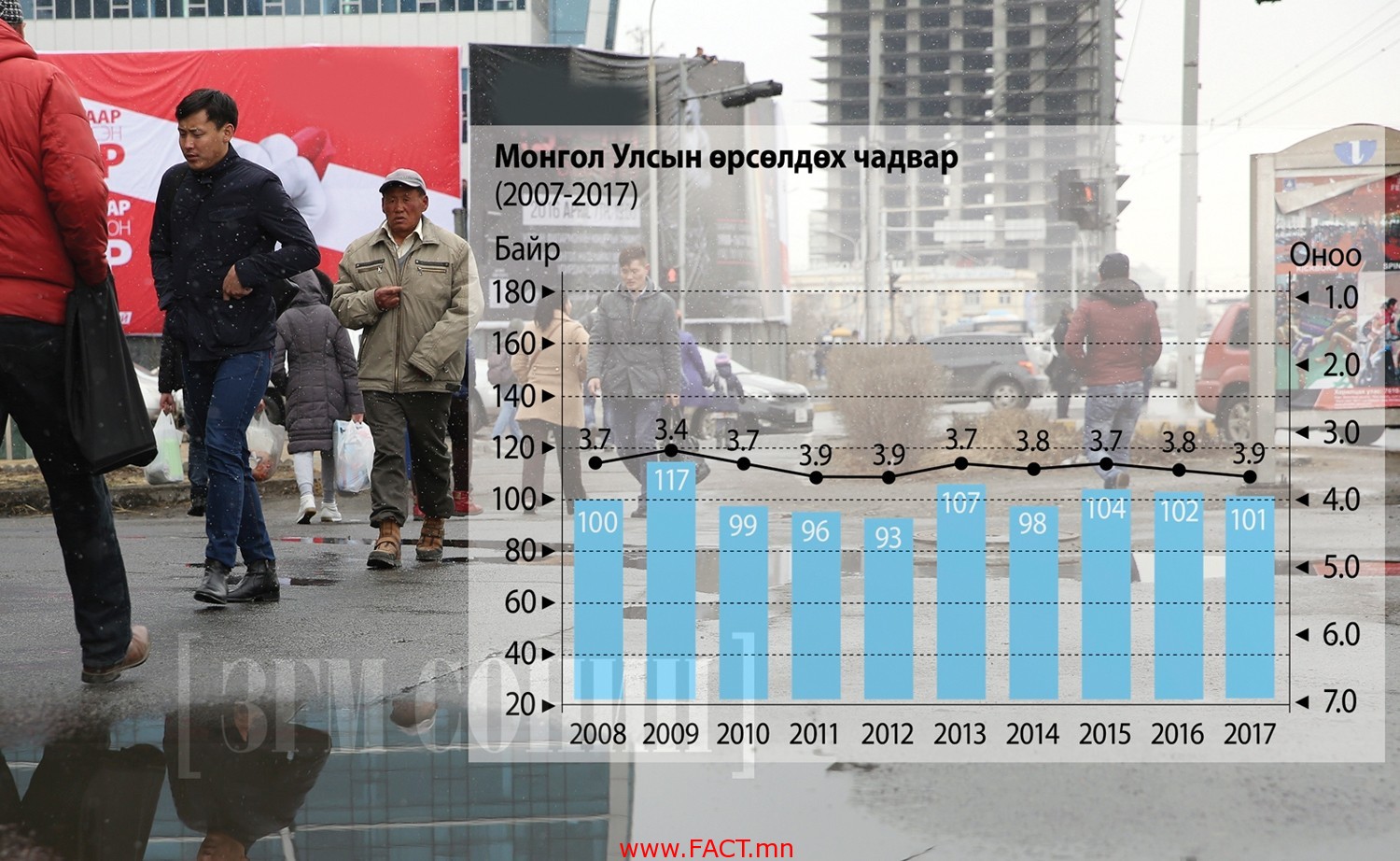Дэлхийн эдийн засгийн форум улс орнуудын өрсөлдөх чадварыг тодорхойлоход шинэ аргачлал хэрэглээд 10 жил элээж буй аж. Тиймээс Монгол гэдэг улс хаахна явааг харахын тулд сүүлийн 10 жилийн үзүүлэлтийг багцаар нь харах хэрэгтэй болох нь. Бид дунджаар 101-102 дугаар байрт өнгөрсөн 10 жилийг элээжээ.