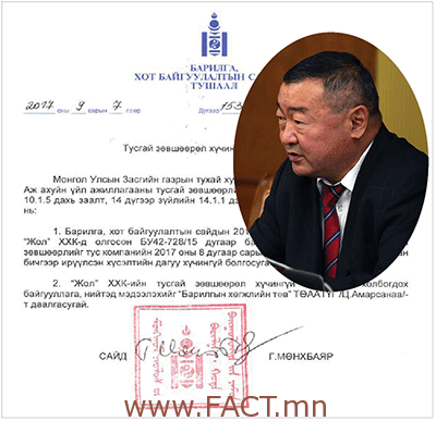 -Тэрбээр Барилга хот байгуулалтын сайд болохын тулд “Жол” ХХК-ийнхаа тусгай зөвшөөрлийг хуурамчаар хүчингүй болгуулсан байж болзошгүй асуудал үүсээд байгаа юм-