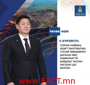 2018 оны төсвийн төсөл, үүнийг дагалдан гарах бусад хуулийн төслийг УИХ-аар хэлэлцэхтэй холбогдуулан Монгол Улсын Ерөнхий сайд У.Хүрэлсүх чуулганы хуралдаанд үг хэлэхдээ тусгай зөвшөөрөл болон газрын наймаатай эрс шийдэмгий тэмцэхээ мэдэгдлээ. Шударга ёсыг алдагдуулж, олон нийтийн бухимдлыг байнга дагуулж ирсэн газрын наймаа, ашигт малтмалын тусгай зөвшөөрөл дагасан эмх замбараагүй байдлыг таслан зогсоох цаг болсон гэж Ерөнхий сайд үзэж байна.