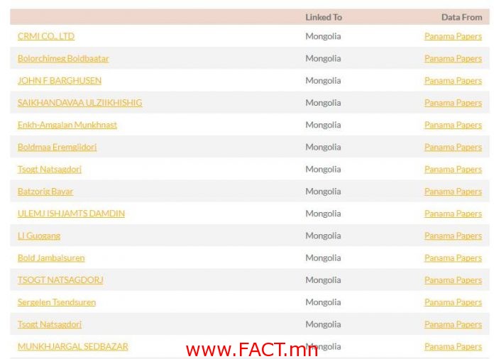 Монгол Улсын төрийн албанд ажиллаж байсан болон одоо ажиллаж байгаа нэр бүхий 23 иргэн оффшор бүсэд данс эзэмшдэг болох нь тогтоогдсон нь энэ. Мөн тэд Авлигатай тэмцэх газрын Хөрөнгө орлогын мэдүүлэгтээ оффшор бүс дэх дансны талаарх мэдээллээ тусгаж мэдүүлээгүй, өөрийн хөрөнгө, орлого их хэмжээгээр нэмэгдсэнийг хууль ёсны болохыг тайлбарлаж чадаагүй гэдгийг хавтаст хэргээс харж болно.