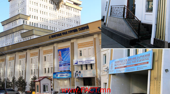 Үүний мөрөөр сурвалжиллаа. Миний эхний зогсоол Улсын филармони. Энэ байгууллага 1972 онд хүмүүсийн ярьжзаншсанаар “Муурын байшин” буюу ГХЯ–ны хажууд хоёр давхар байранд анх байгуулагджээ. Тус байр нь сүүлднийслэлийн өмчид шилжиж, хожим нь зарагдсан сурагтай. Харин одоогийн СТӨ–ний байранд 1988 онд оржээ. Одоогоор мкв –ыг нь 5000 төгрөгөөр түрээслэдэг юм байна.Гэвч ямар үндэслэлээр түрээсийн байранд оруулсаннь тодорхойгүй байдаг тухай Улсын филармонийн захирал Ч.Даваасүрэн ярив. Өнөөгийн байр нь ямар чстандартад нийцдэггүй. Жижиг кино танхим байсныг өөрсдийн бололцоогоор тайз болгон засчээ. Филармони болхөгжим эгшиглэсэн газар. “Морин хуур”, “Баянмонгол” гэсэн хөгжмийн томоохон чуулга энэ байгууллагадхаръяалагдаж ирсэн. Гэвч тоглолт хийж буй заал нь ямар ч акустик орчин бүрдүүлэх боломжгүй. Ч.Даваасүрэндарга цааш нь “Манай байгууллага180 уран бүтээлчтэй. Харин заал нь дөнгөж 260 хүний суудалтай. Жижигзааланд нь оркестер нь бүтнээрээ багтаж суух боломжгүй.Тиймээс том уран бүтээл хийхдээ бусад байгууллагынтайзыг түрээслэдэг. Олсон орлогоо улсдаа тушаагаад, түрээсээ төлөөд бидний гар дээр юм үлддэггүй. Гэтэлгадны орнуудад хот бүрт филармони байдаг” гэв.
